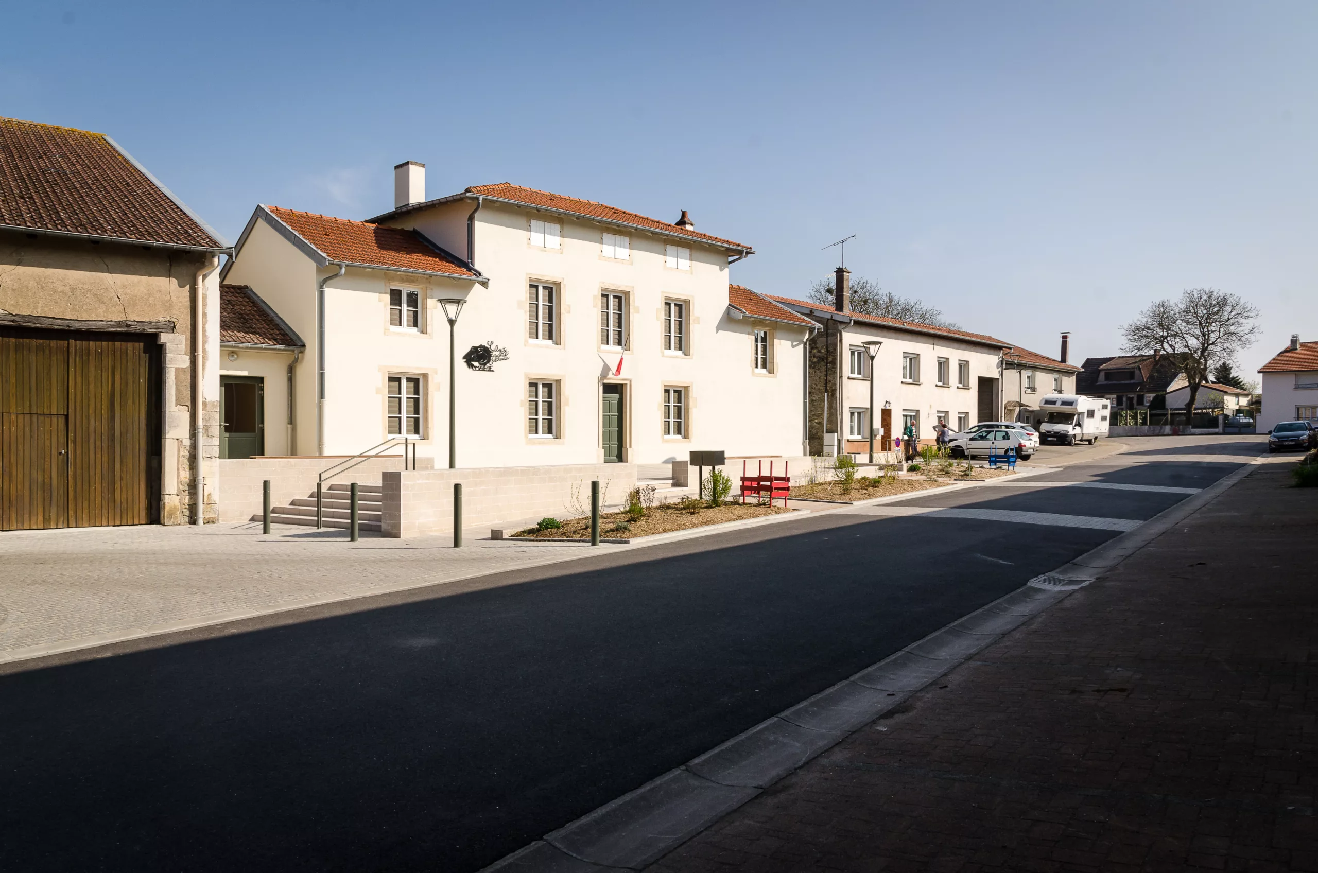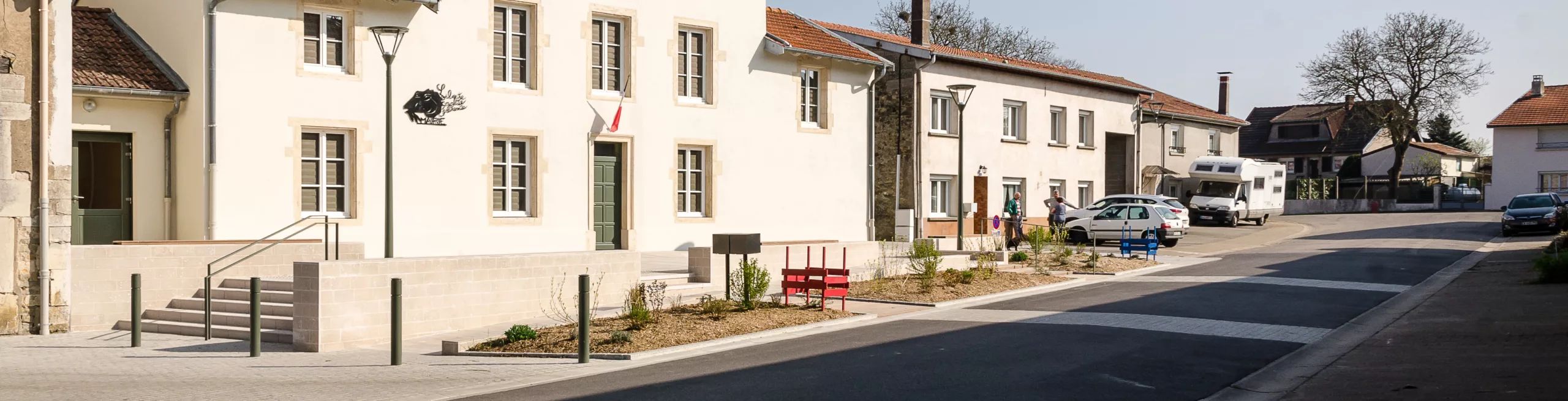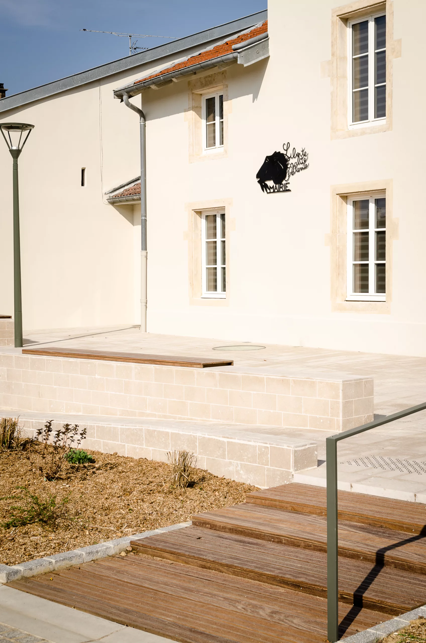 Aménagement de la place de la Maire et mise en conforimité des accès PMR. Ravalement de la façade et aménagements paysagers