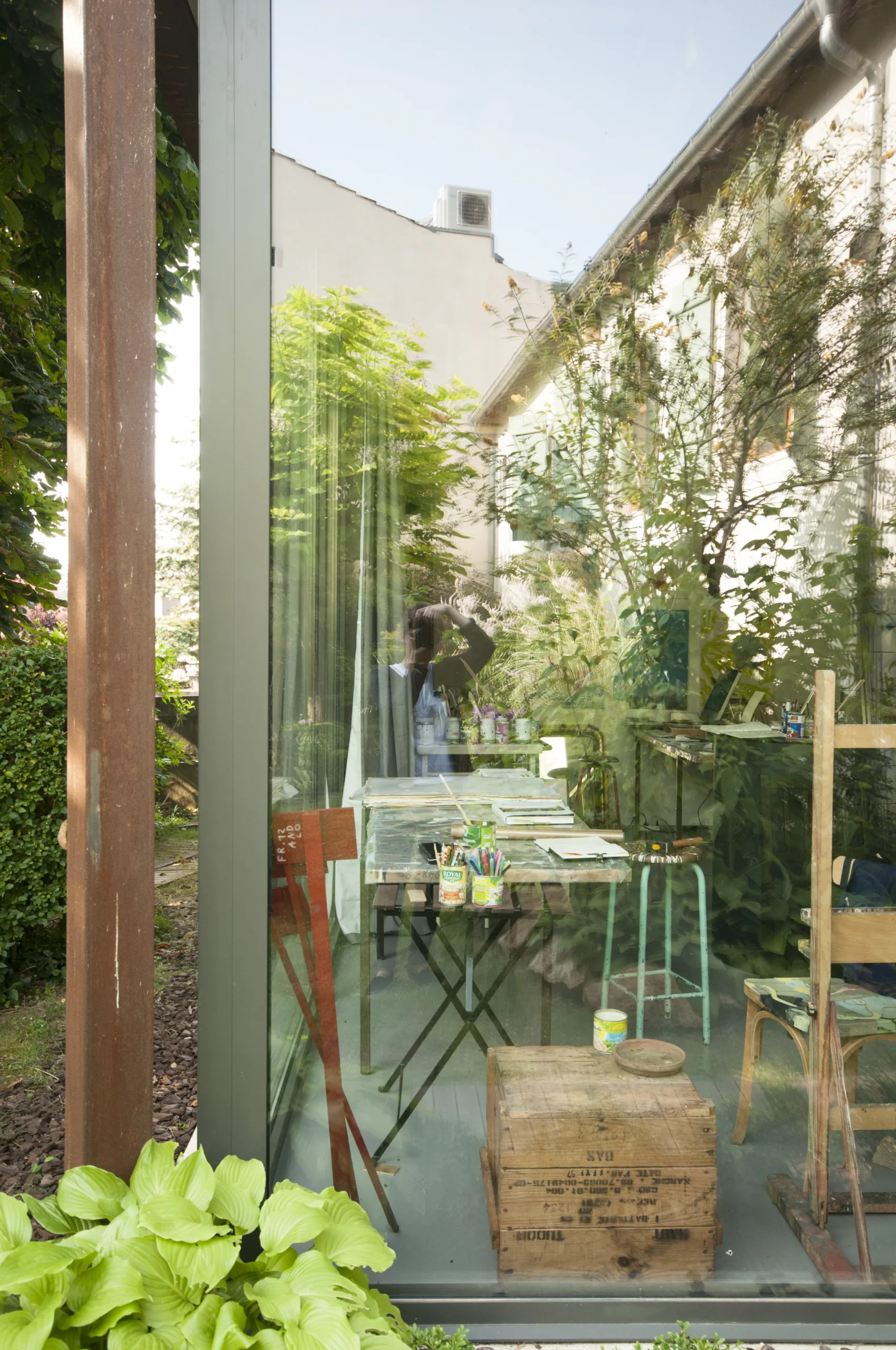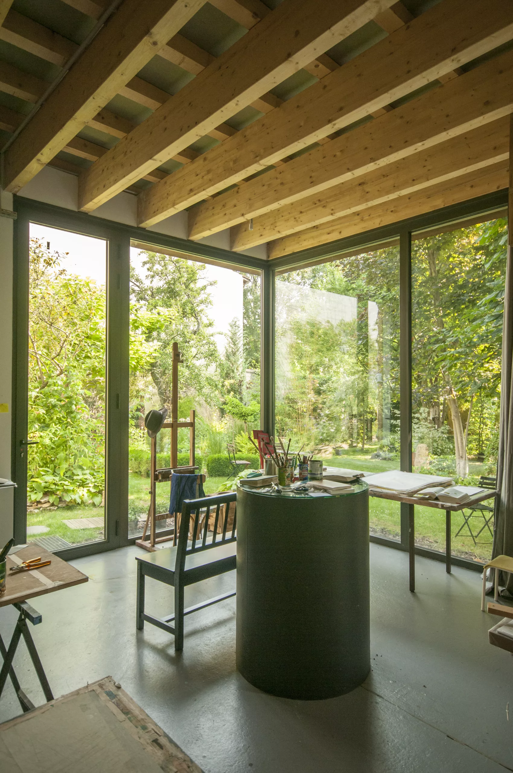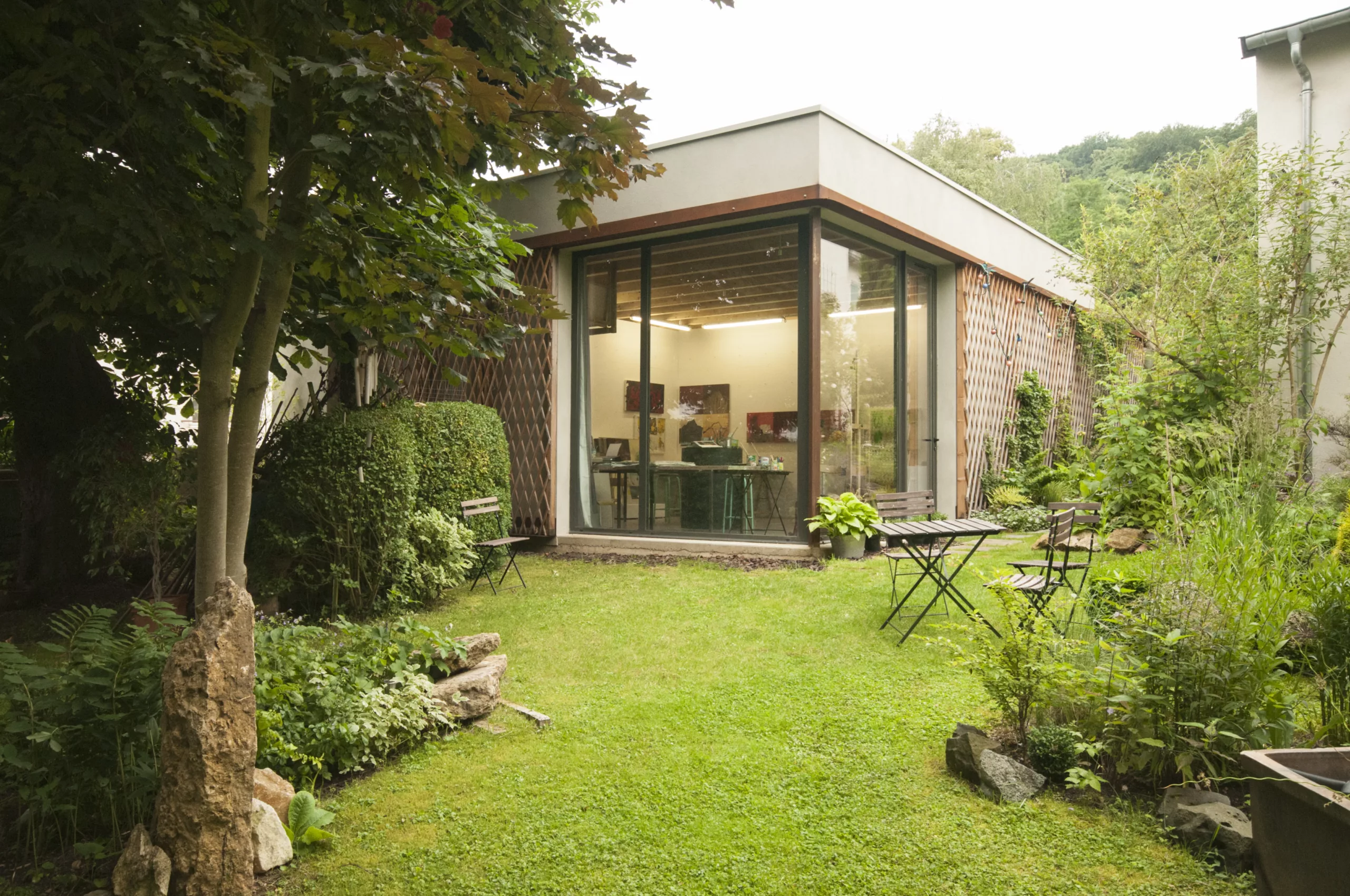 Construction d’un atelier d’artiste au sein d’un jardin.