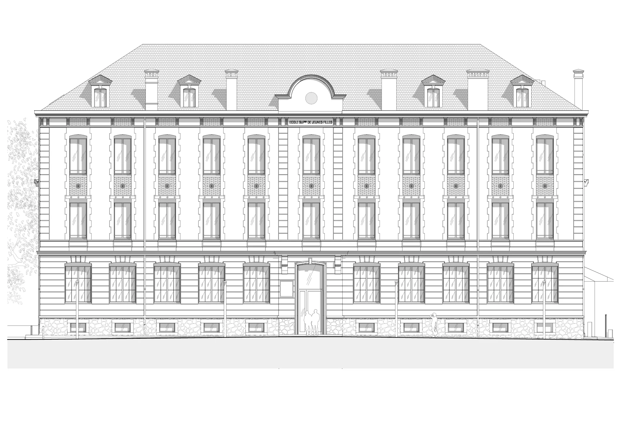 Restructuration d’une ancienne école de fille du début du XXe siècle en Maison des Associations, mise en accessibilité PMR et reconfiguration globale du site
