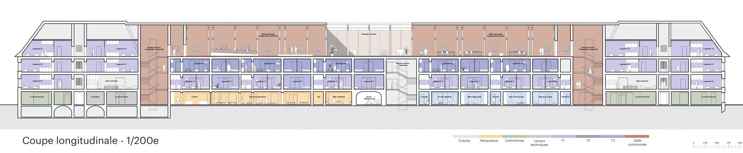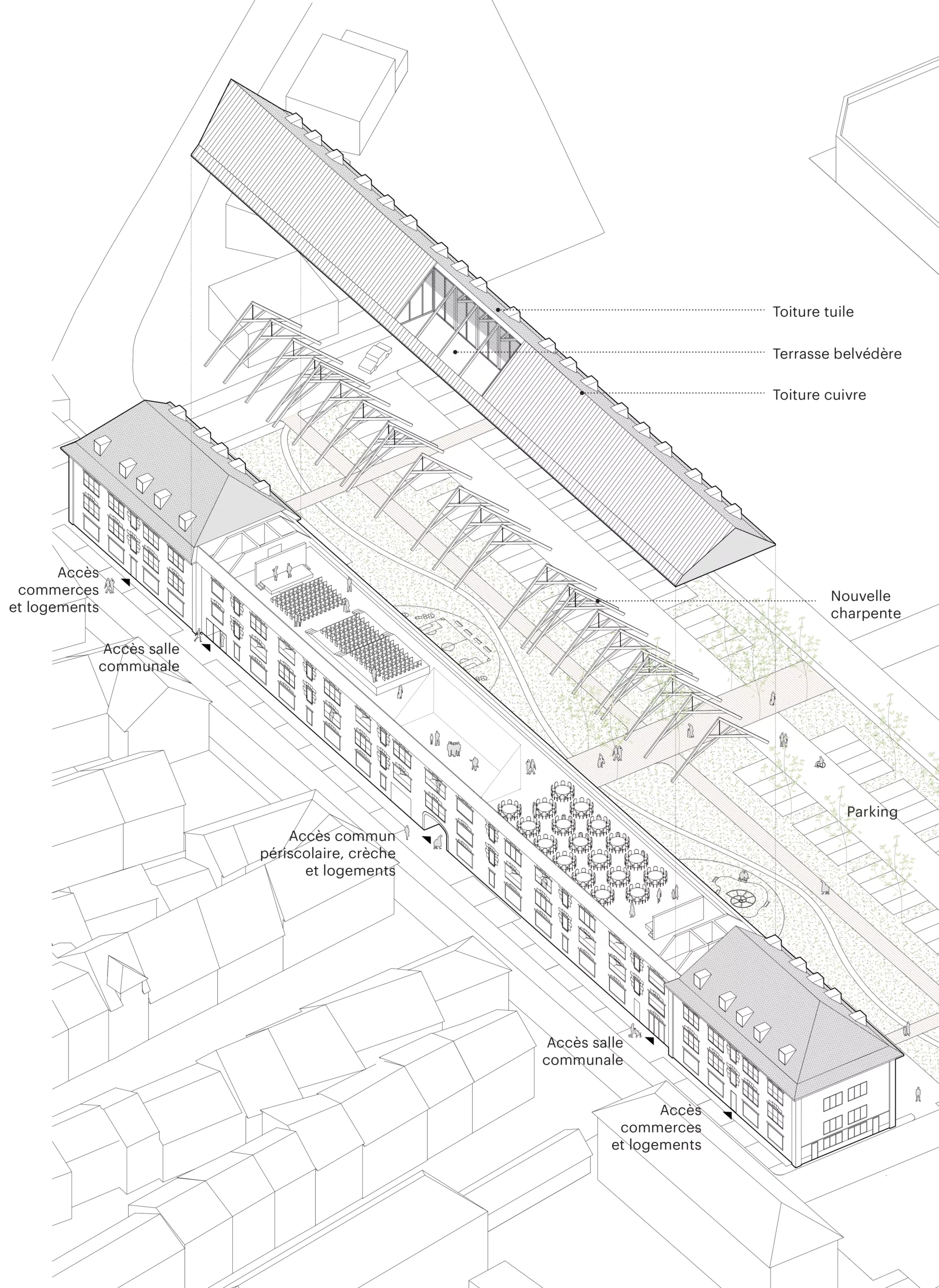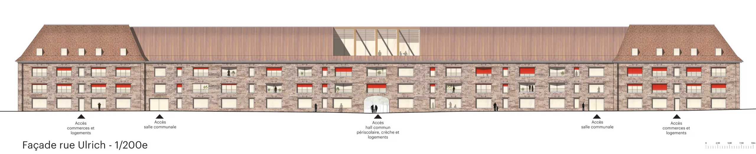 Restructuration d’une ancienne caserne d’infanterie militaire Vauban (fin XVII°) en un programme mixte accueillant une crèche, une restauration périscolaire, des cellules commerciales modulables en RDC, et enfin des logements et des bureaux pour professions libérales aux étages